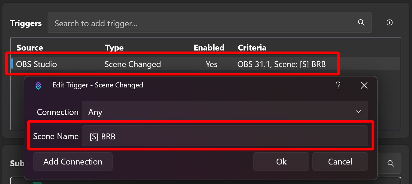 OBS Scene Changedand point it to the scene you created earlier